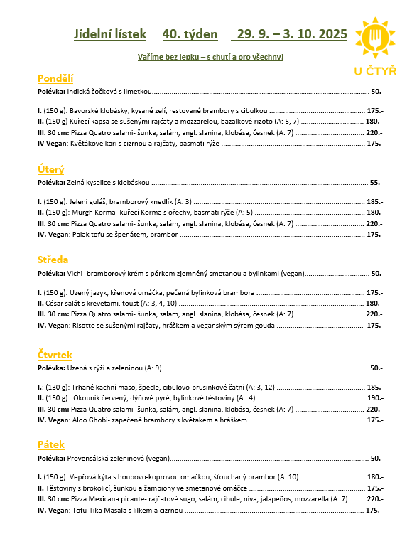 Denně bude možnost bezlepkové pizzy- dle denní nabídky.