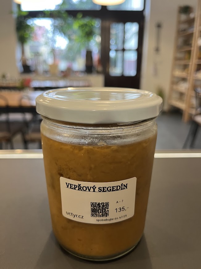 Vepřové maso (150 g syrového masa)-30%, cibule, zelí, smetana, koření